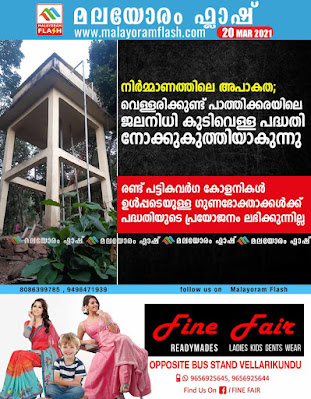 നിർമ്മാണത്തിലെ അപാകത; വെള്ളരിക്കുണ്ട് പാത്തിക്കരയിലെ ജലനിധി കുടിവെള്ള പദ്ധതി നോക്കുകുത്തിയാകുന്നു