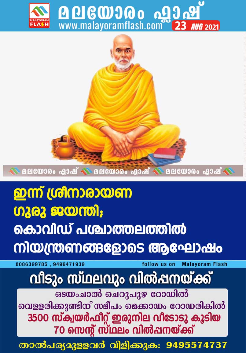 ഇന്ന് ശ്രീനാരായണ ഗുരു ജയന്തി; കൊവിഡ് പശ്ചാത്തലത്തിൽ നിയന്ത്രണങ്ങളോടെ ആഘോഷം