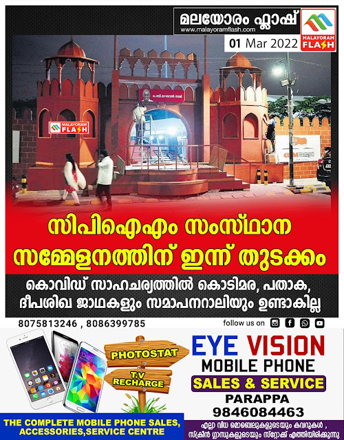 സിപിഐഎം സംസ്ഥാന സമ്മേളനത്തിന് ഇന്ന് തുടക്കം കൊവിഡ് സാഹചര്യത്തിൽ കൊടിമര, പതാക, ദീപശിഖ ജാഥകളും സമാപനറാലിയും ഉണ്ടാകില്ല.