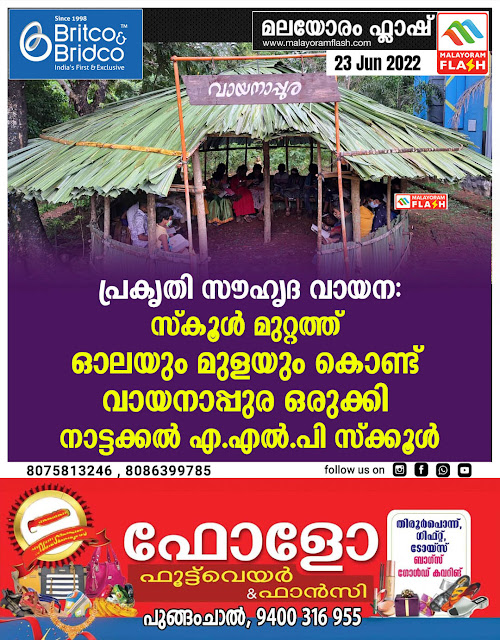 വായനാവരാചരണത്തിന്റെ ഭാഗമായി നാട്ടക്കൽ എ. എൽ. പി. സ്കൂളിലാണ് വേറിട്ട രീതിയിൽ ഒരു വായനപ്പുര നിർമ്മിച്ചിരിക്കുന്നത് അറിവിന്റെ അക്ഷരവെളിച്ചത്തിൽ പ്രകൃതി സൗന്ദര്യം വേണ്ടുവോളം ആസ്വദിച്ച് ഓലപ്പുരയിലിരുന്ന് അങ്ങനെ കുട്ടികൾ വായിച്ചു വളരുകയാണ്..