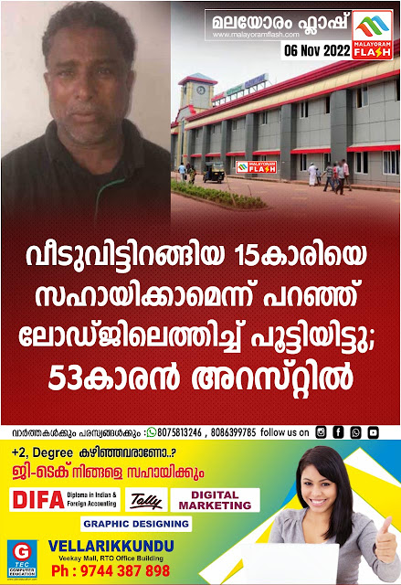 വീടുവിട്ടിറങ്ങിയ 15-കാരിയെ സഹായിക്കാമെന്ന് പറഞ്ഞ് ലോഡ്ജിലെത്തിച്ച് പൂട്ടിയിട്ടു; 53-കാരൻ അറസ്റ്റിൽ