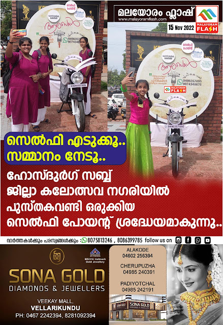 സെൽഫി എടുക്കൂ.. സമ്മാനം നേടൂ.. ഹോസ്ദുർഗ് സബ്ബ് ജില്ലാ കലോത്സവ നഗരിയിൽ പുസ്തകവണ്ടി ഒരുക്കിയ സെൽഫി പോയൻ്റ് ശ്രദ്ധേയമാകുന്നു..