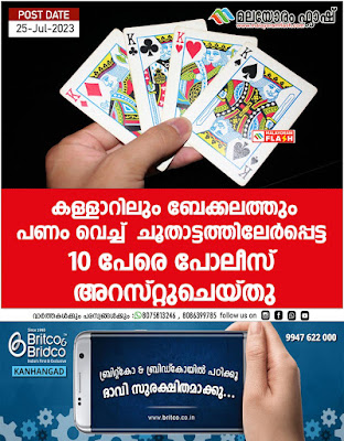 കള്ളാറിലും ബേക്കലത്തും പണം വെച്ച് ചൂതാട്ടത്തിലേർപ്പെട്ട 10 പേരെ പോലീസ് അറസ്റ്റുചെയ്തു