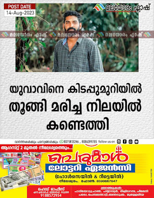 യുവാവിനെ കിടപ്പുമുറിയിൽ തൂങ്ങി മരിച്ച നിലയിൽ കണ്ടെത്തി
