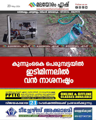 പെരുമ്പട്ട : വേനൽ മഴയോടൊപ്പം അപകടങ്ങളും പെയ്തിറങ്ങുന്നു. ഇന്നലെ വൈകുന്നേരം മഴയുടെ മുന്നോടിയായി വന്നെത്തിയ അതിശക്തമായ ഇടിമിന്നലിൽ പെരുമ്പട്ട മുള്ളിക്കാട് പി.സി.സലാമും കുടുംബവും വാടകയ്ക്ക് താമസിക്കുന്ന എം.എസ്. തയ്യിബിന്റെ മേൽനോട്ടത്തിലുള്ള വീട്ടിൽ വലിയ ആഘാതമാണ് ഉണ്ടാക്കിയത് . വീട്ടിലെ വൈദ്യുതി സംവിധാനം പാടെ നശിച്ചു. മെയിൻ സ്വിച്ച്,മീറ്റർ, ഡി.പി.ബോർഡ് , വാഷിംഗ് മിഷീൻ, ഫ്രിഡ്ജ് , സ്വിച്ച് ബോർഡുകൾ എല്ലാം കത്തി നശിച്ചു,