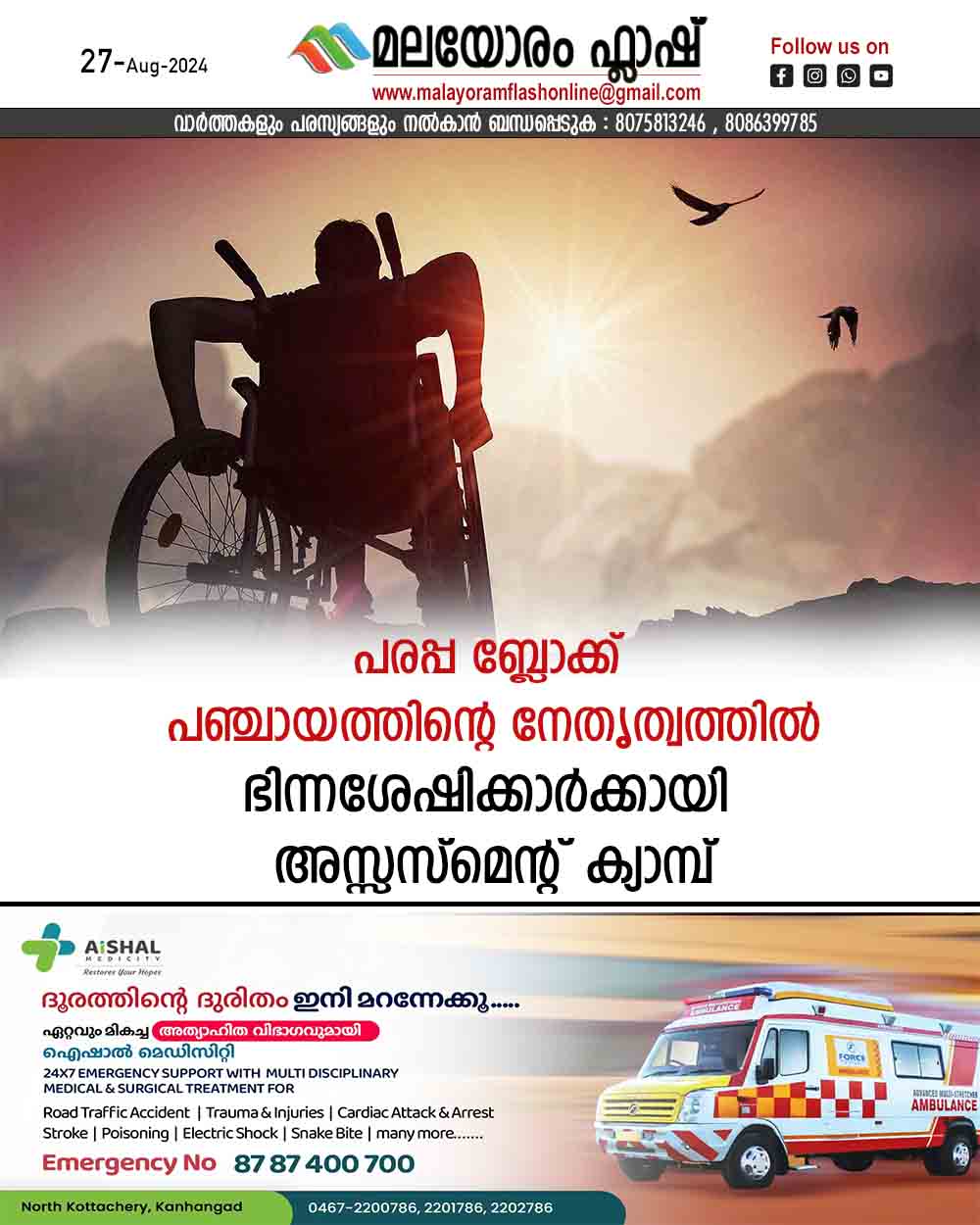 പരപ്പ ബ്ലോക്ക് പഞ്ചായത്തിന്റെ നേതൃത്വത്തിൽ ഭിന്നശേഷിക്കാർക്കായി അസ്സസ്മെന്റ് ക്യാമ്പ്