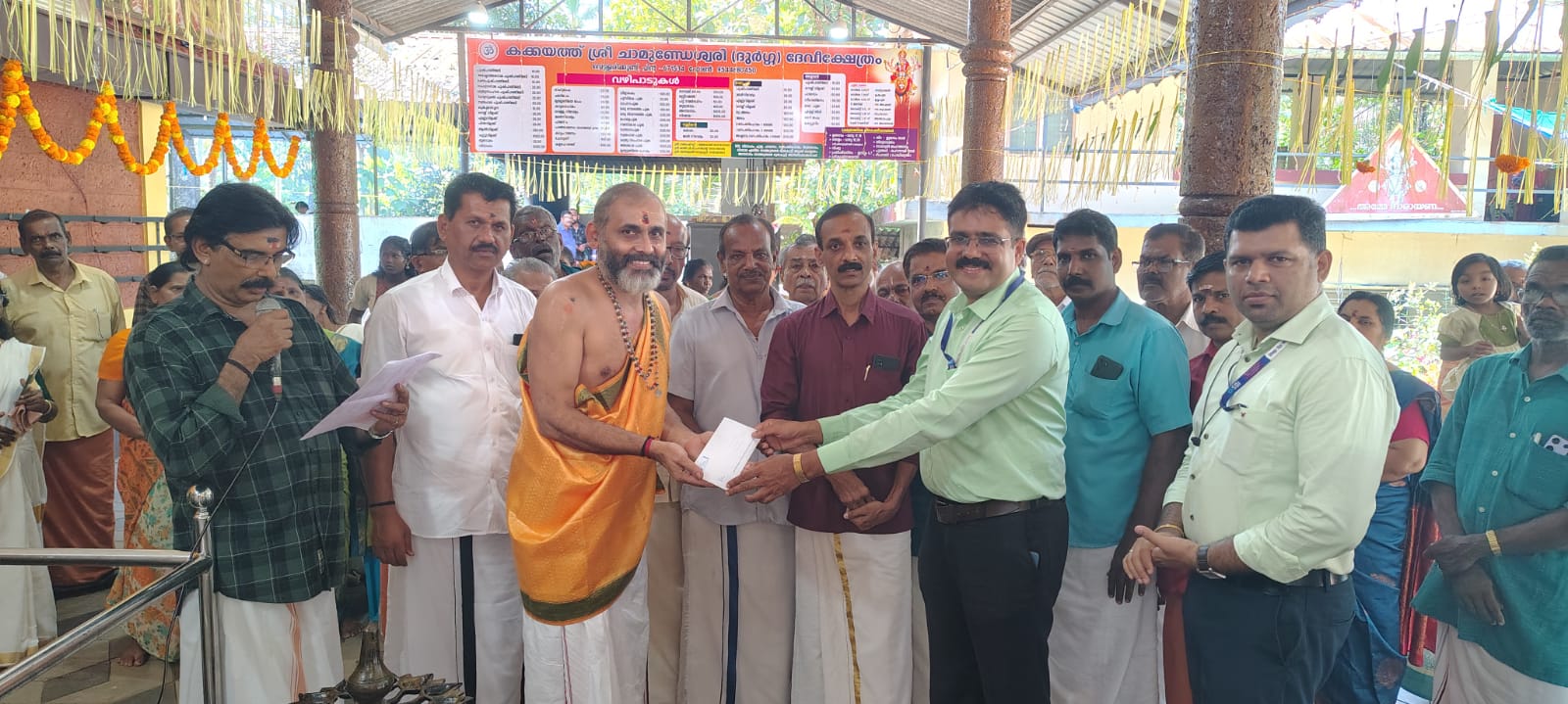 ചടങ്ങിന് മുന്നോടിയായി എല്ലാ വെള്ളിയാഴ്ചകളിലും ക്ഷേത്രത്തിൽ നടത്തി വരാറുള്ള പ്രസാദഊട്ട് ഫണ്ട് സമർപ്പണം നടന്നു.ക്ഷേത്രം മേൽശാന്തി ഗണേഷ് ഭട്ട് ആദ്യ സംഭാവന രഞ്ജിത്ത് കുമാർ, ശശിധരൻ, സുനിൽ കുമാർ എന്നിവരിൽ നിന്നും ഏറ്റുവാങ്ങി. തുടർന്ന്