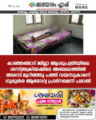 കാഞ്ഞങ്ങാട് ജില്ലാ ആശുപത്രിയിലെ ശസ്ത്രക്രിയക്കിടെ അബദ്ധത്തിൽ ഞരമ്പ് മുറിഞ്ഞു പത്ത് വയസുകാരന് ഗുരുതര ആരോഗ്യ പ്രശ്നമെന്ന് പരാതി