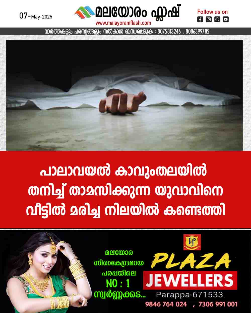 ചിറ്റാരിക്കാൽ : തനിച്ച് താമസിക്കുന്ന യുവാവ് വീട്ടിൽ മരിച്ച നിലയിൽ കണ്ടെത്തി. ഇന്നലെ വൈകീട്ടാണ് യുവാവിനെ മരിച്ച നിലയിൽ കാണപ്പെട്ടത്. പാലാവയൽ കാവും തല ഒറ്റക്കുഴിയിലെ ദേവസ്യയുടെ മകൻ മാനുവൽ എന്ന മനോജിനെ 42യാണ് മരിച്ച നിലയിൽ . ചിറ്റാരിക്കാൽ പൊലീസ് സ്ഥലത്തെത്തി.